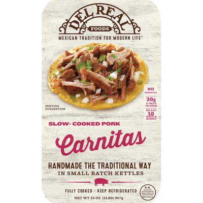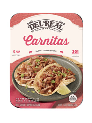 Del Real Carnitas Prepared Entree 16 oz Brand. Richly seasoned and slow braised Carnitas make a flavorful and DEL REAL FOODS. Inspired by their traditional family recipes today Del Real Foods makes fresh Mexican favorites by hand available at your local grocery store ready to serve in minutes.